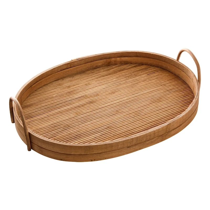 Found & Fable is a new collection that lets you explore what’s right around the corner. Choose your own adventure every day. Savor it all and say yes to what comes next—exclusively At Home. Our 16in. natural wood serving tray features a beautiful oval body with loop handles. Its sizeable surface is perfect to hold a variety of dishes and tableware. For proper care, wipe the tray with a damp towel. Easily serve nibbles and sips to guests at your next dinner party.