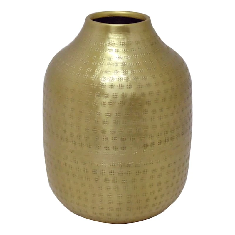 Gold Etched Aluminum Vase, 10"
