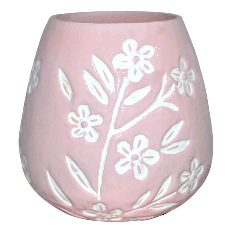 Grace Mitchell White Floral Pink Glass Vase, 6"
