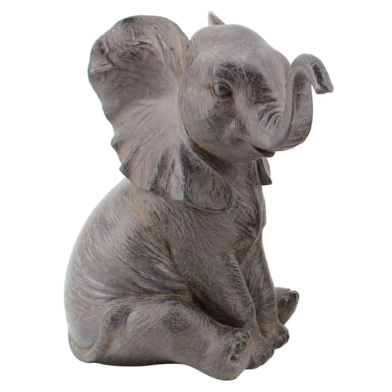 Grey Sitting Elephant, 8"