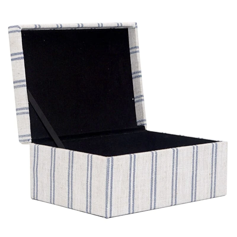 Honeybloom Ivory & Blue Striped Decorative Box, 9×7
