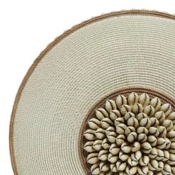 Tracey Boyd Brown & Ivory Carved Medallion With Beads On Stand, 16"