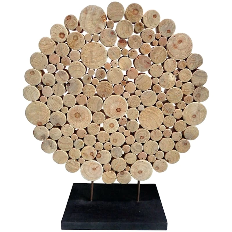 Sliced Wood Disk Sculpture With Black Base, 24"