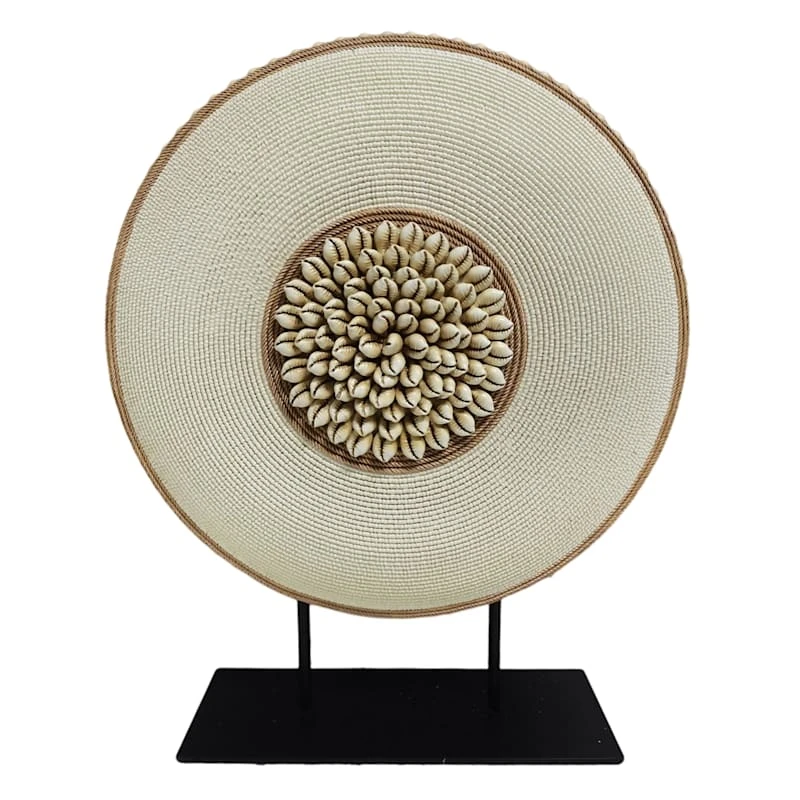 Tracey Boyd Brown & Ivory Carved Medallion With Beads On Stand, 16"