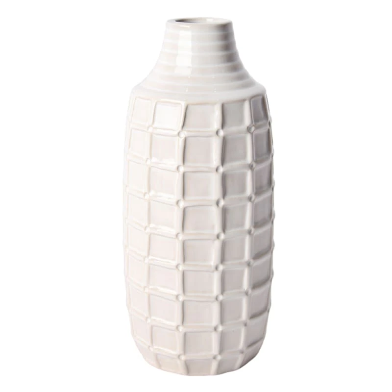 Ty Pennington Ivory Windowpane Ceramic Vase, 11"
